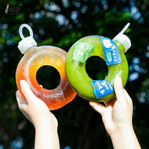 Material reciclable 500ml Linda forma redonda botella de jugo de fruta de plástico botella de té de leche